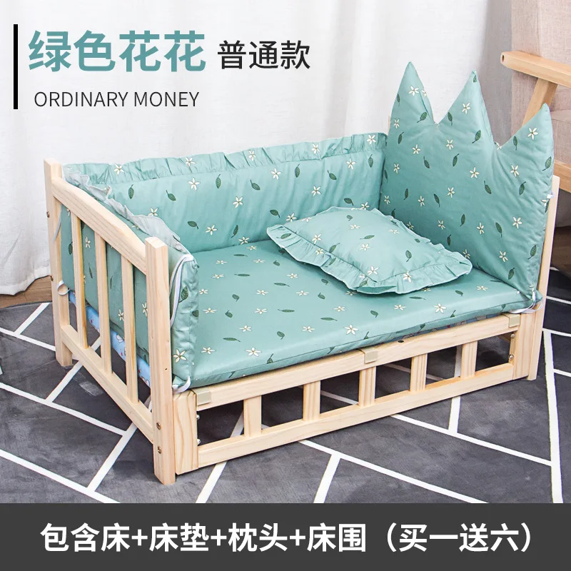 Dog Bed Pet Bed Three-piece Bedding Mattress Pillow Bed Wooden